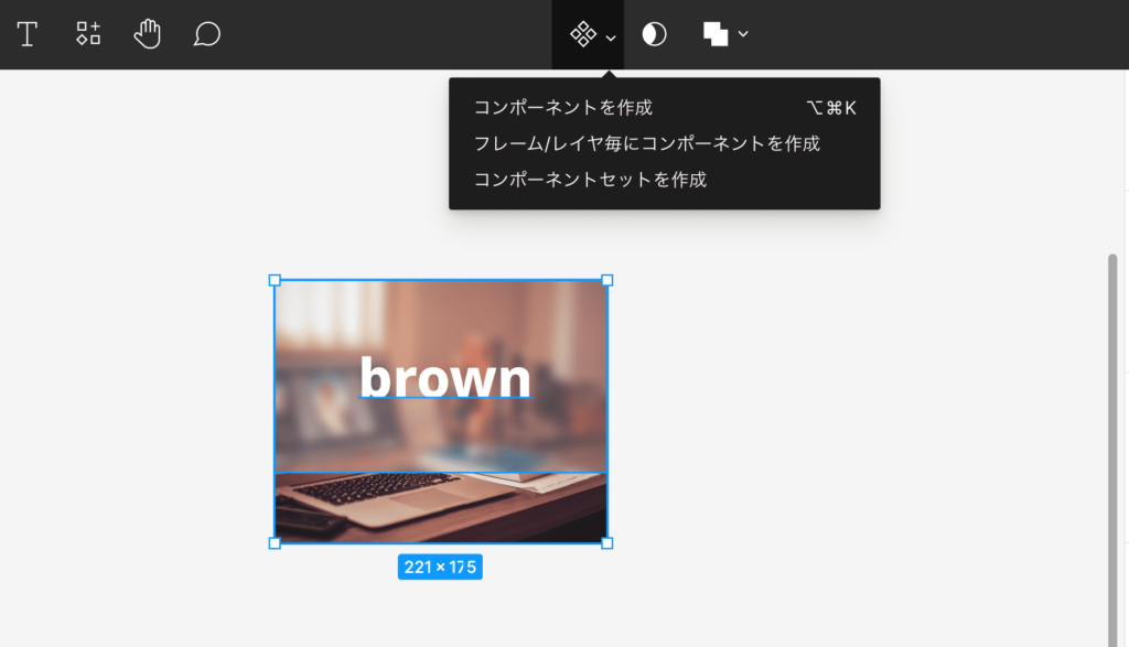 マスターコンポーネントにしたい要素を選択して、メニューの「コンポーネントを作成」をクリック。