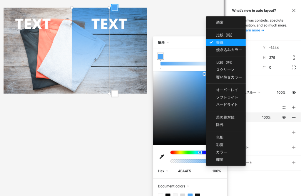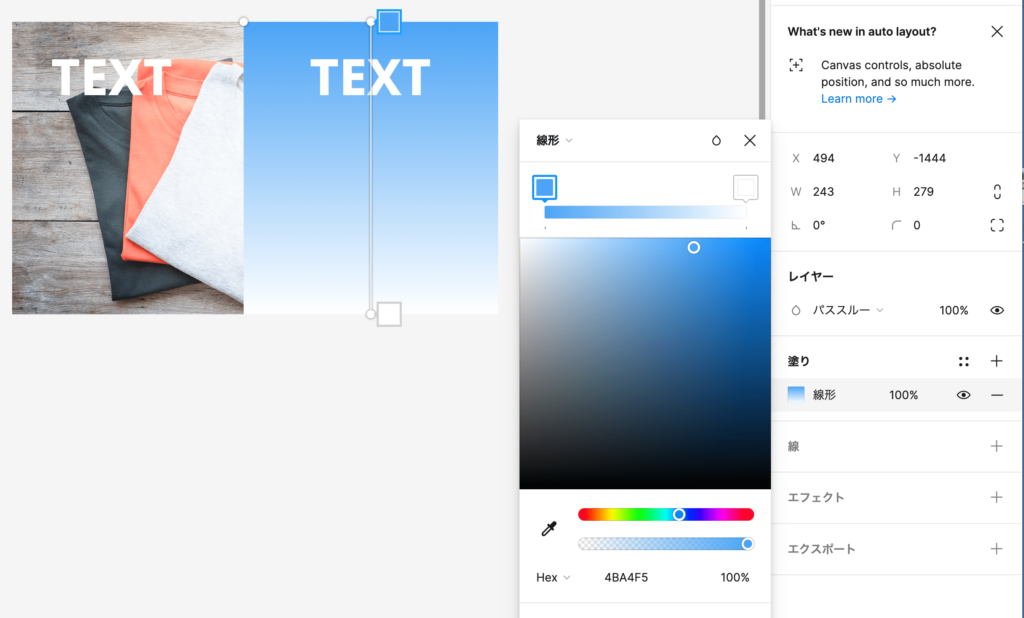 画像の上にグラデーション(線形)をのせて、ブレンドしてみます。