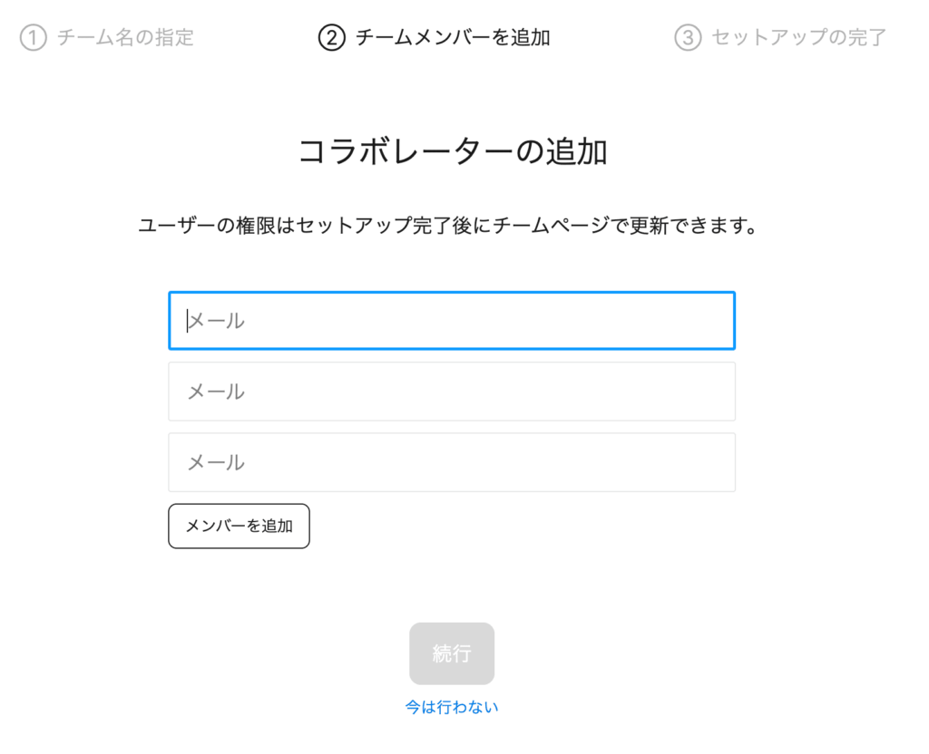 後からユーザー追加できるので、とりあえず「今は行わない」で進む。