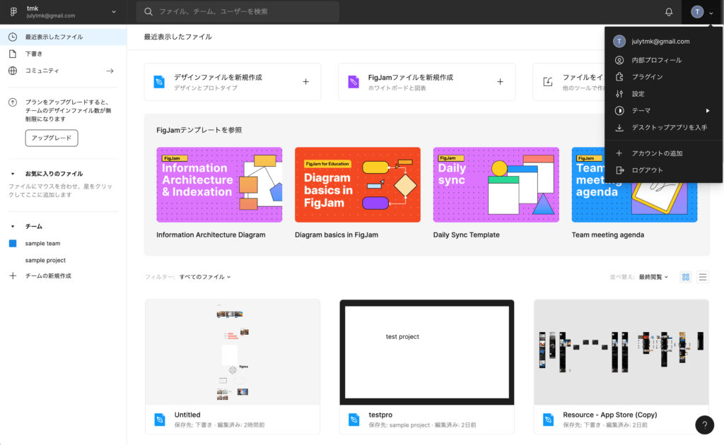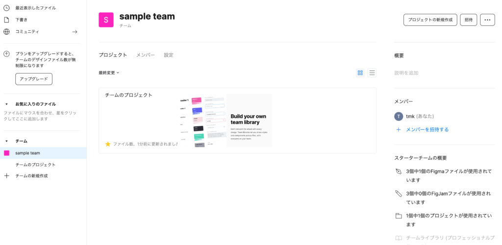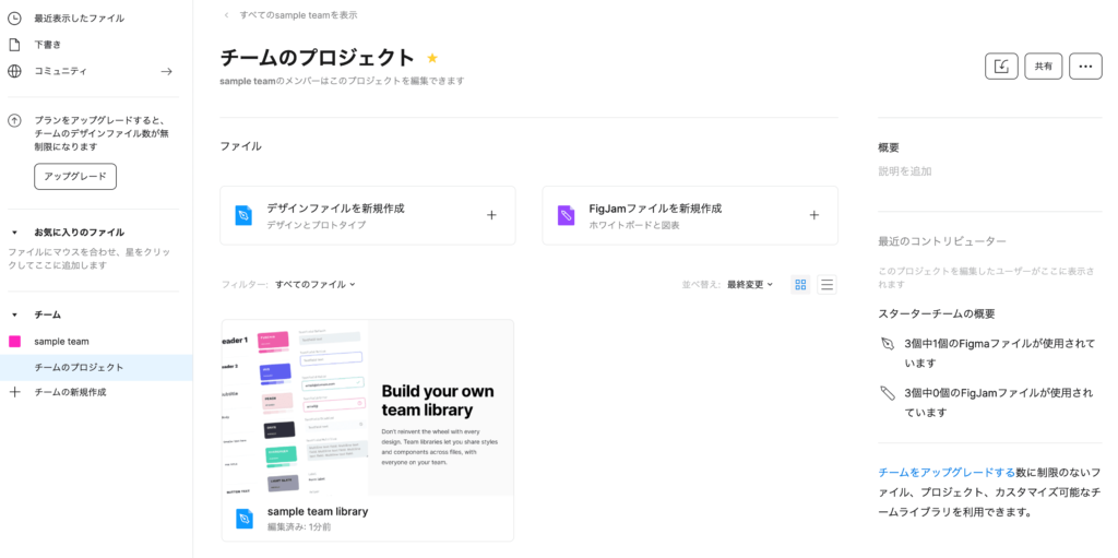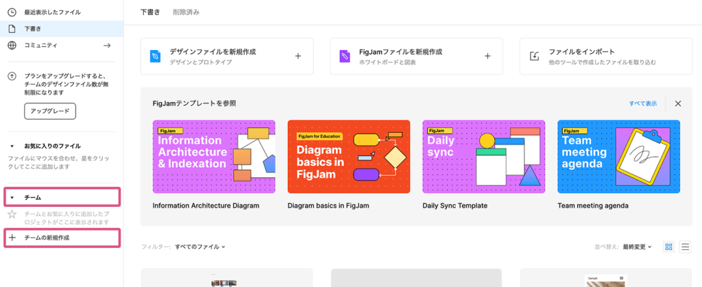 チーム内での無料枠はプロジェクトが1つ(その中のファイルは3つまで)となっていて、ドラフト内での無料枠はファイルのみで、数は無制限となっています。