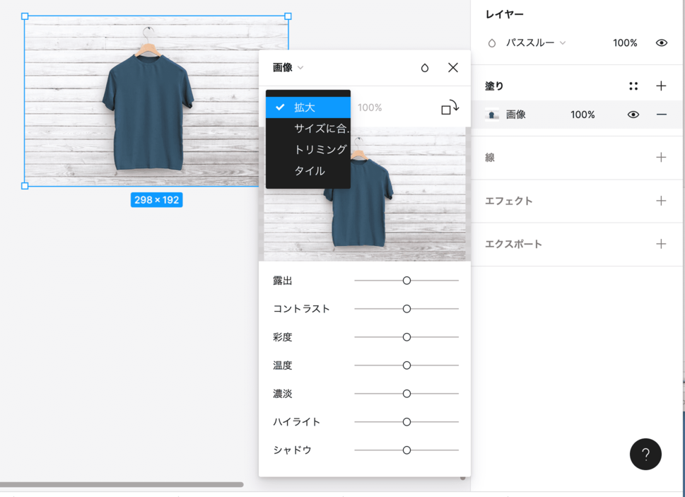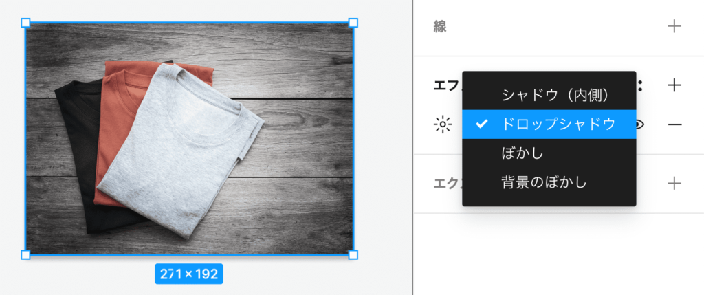 エフェクトの+ボタンを押すと、ドロップシャドウ・ぼかしなどをかけられます。