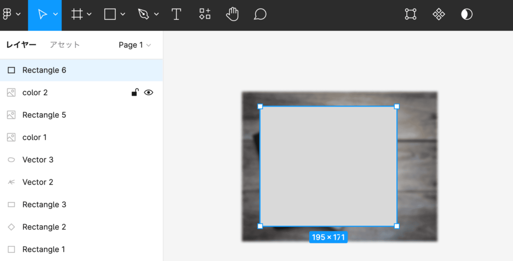 先ほどのぼかしをかけた画像の上に四角を描きました。(Rectangle 6レイヤー)
