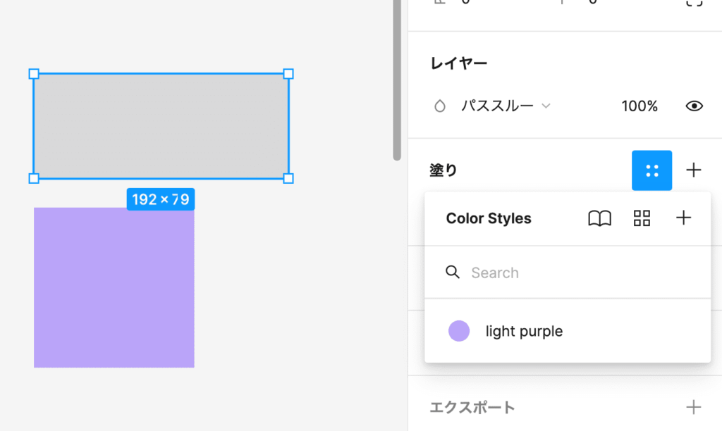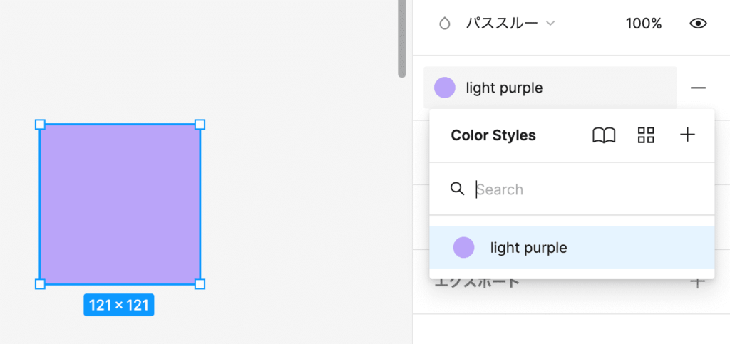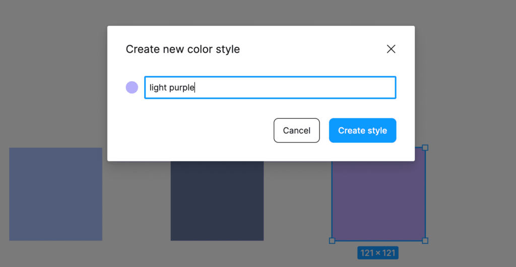「Create new color style」 画面で登録したい色のスタイル名(light purple)を入力して、「Create style」 をクリックして保存。