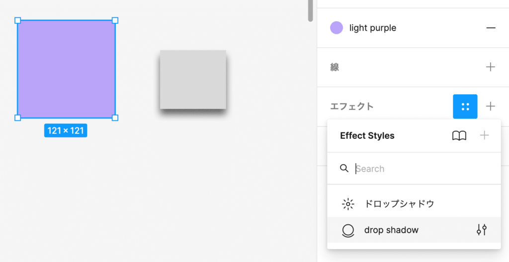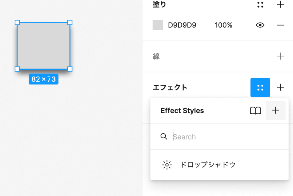 ドロップシャドウが適用されているオブジェクトを選択して、エフェクトの右のボタンをクリックして、プラスボタンをさらにクリックし、スタイル名を入力して保存します。