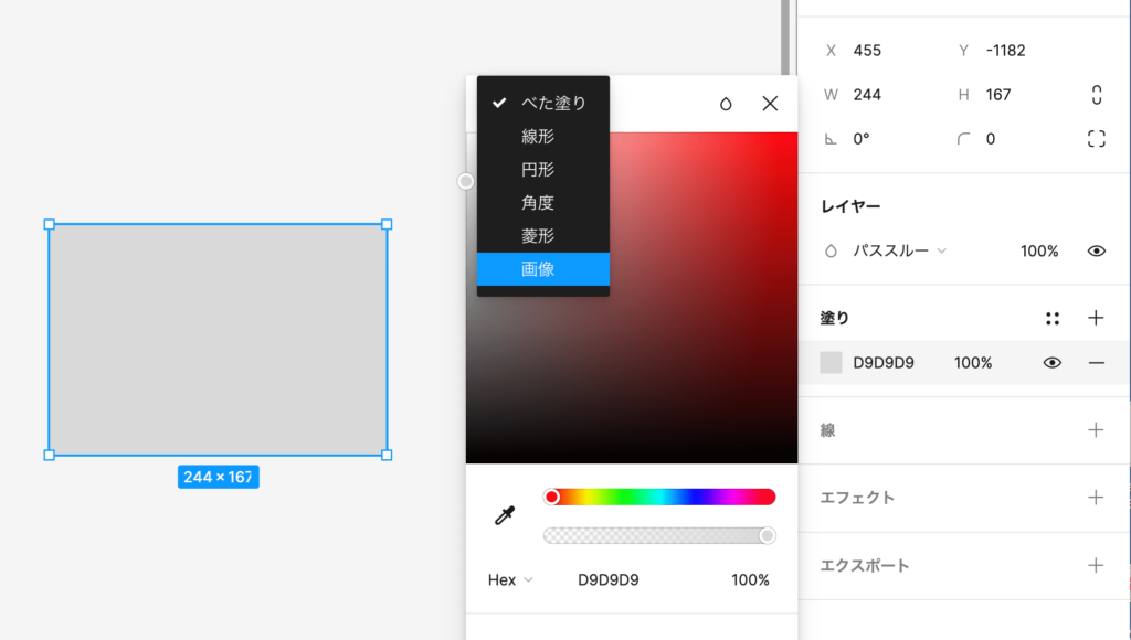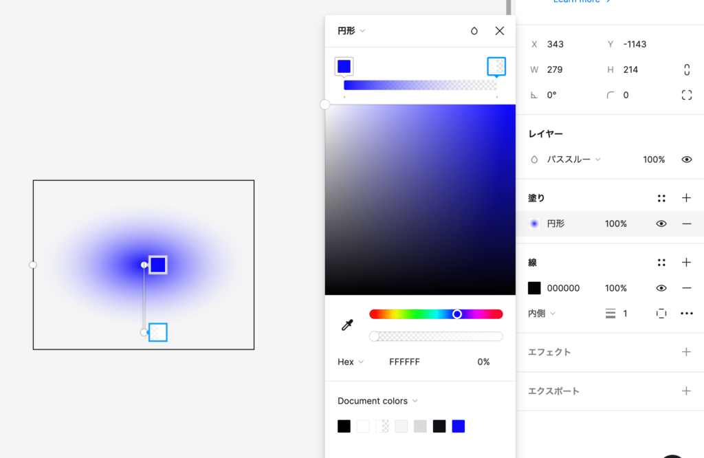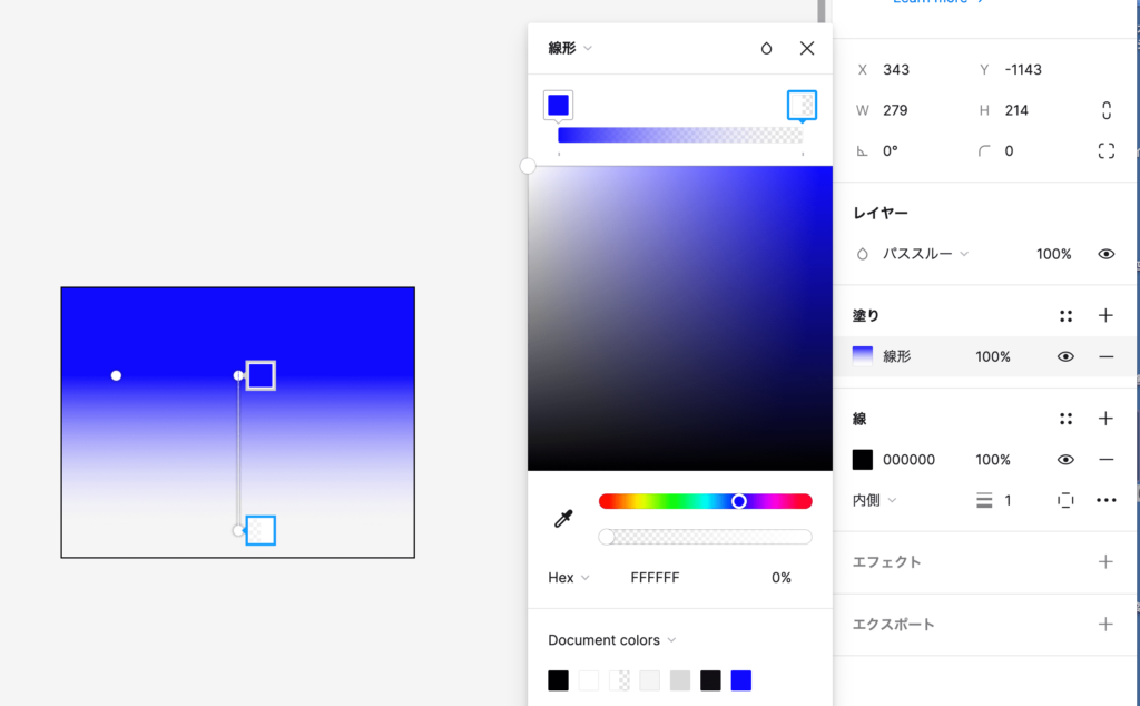 「塗りの設定パネル」では、べた塗り・画像だけでなく、グラデーションも選択できます。