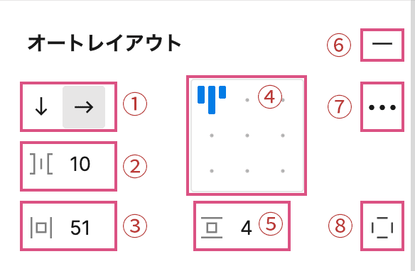 ⑥ オートレイアウトの設定を削除 / 追加・・・➖が削除、+が追加