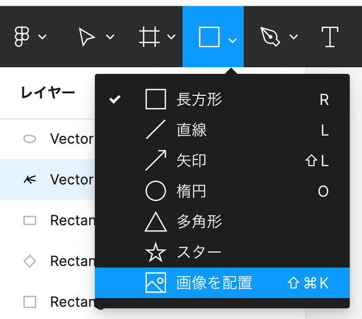 ・図形のメニューのドロップダウンから「画像を配置」を選択。