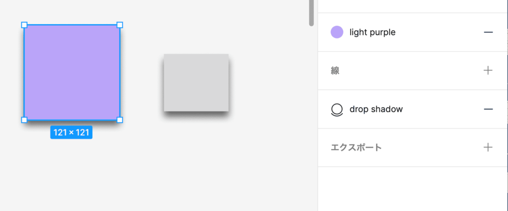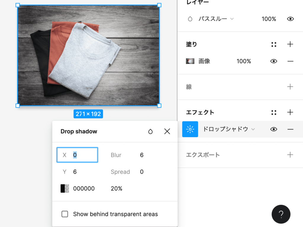エフェクトの+ボタンをクリックして、ドロップダウンから「ドロップシャドウ」を選択。左の設定パネルを開いてシャドウの色・位置・大きさを設定する。