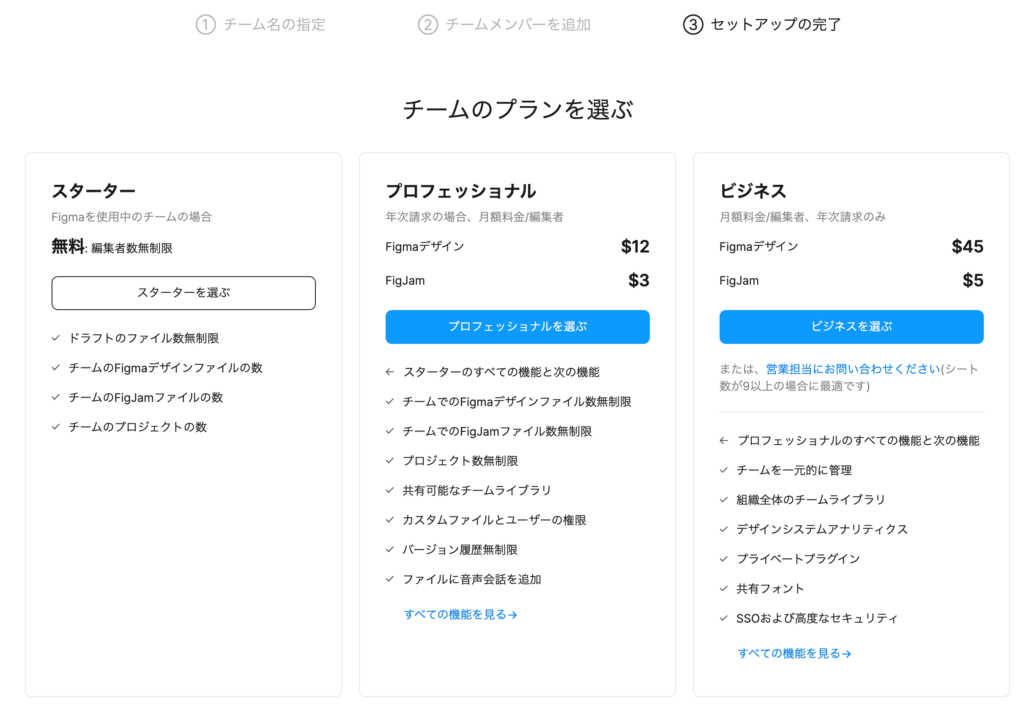 チームのプランを選択する。今回はスターター(無料)プランを選択する。