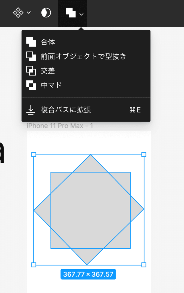 合体:複合パスに拡張にすると、完全に一つの図形として統合される